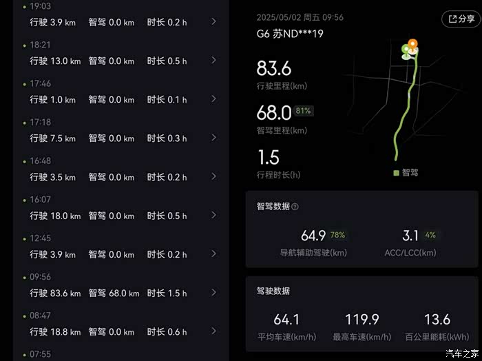 不得不提的是小鹏的三电控制系统是真不错,在高速段83.6公里竟然开出了13.6百公里的能耗。
