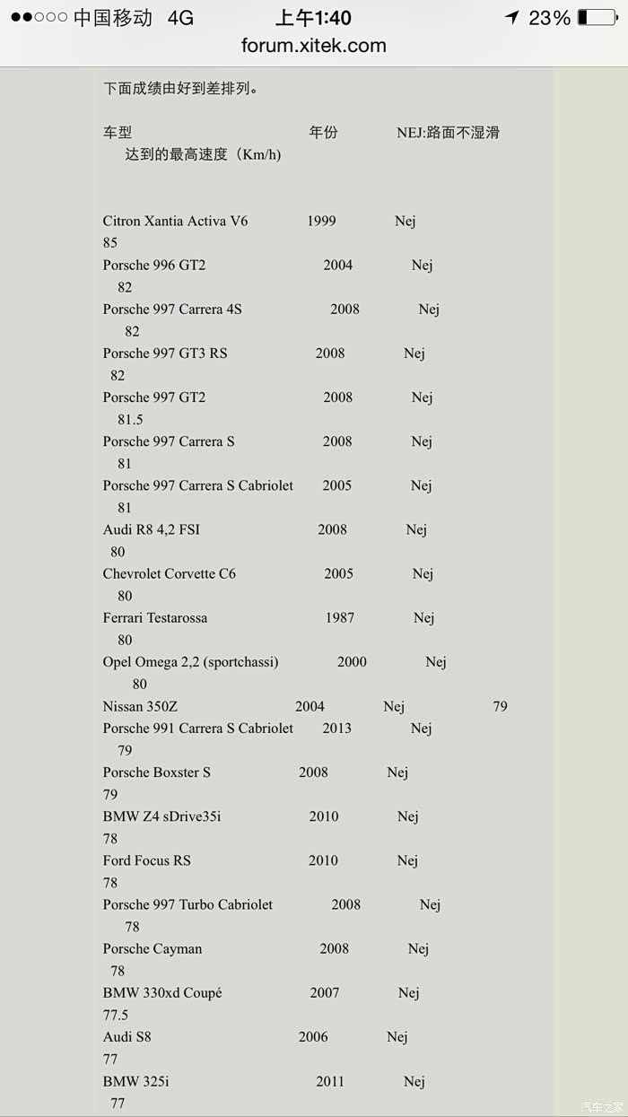 xantia activa V6成绩居然是85km,排名第一,主动液压悬挂,媲美大部分跑车,难怪赛道上能紧追保时捷911!