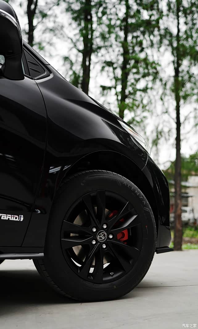 1. 黑武士化。就是全车黑化,银条贴黑或喷黑,轮毂喷黑,卡钳喷红,赛那标志贴黑,尾 门牛头标贴黑(注意车头牛头标千万别贴,因为牛头标后面有个雷达,贴了会影响)。分了两次,行李架第二次才喷黑,喷黑5分钟,准备了1-2小时。我扣掉广汽丰田几个字,混动的那几个银色的字,我觉得是点缀,就留着。