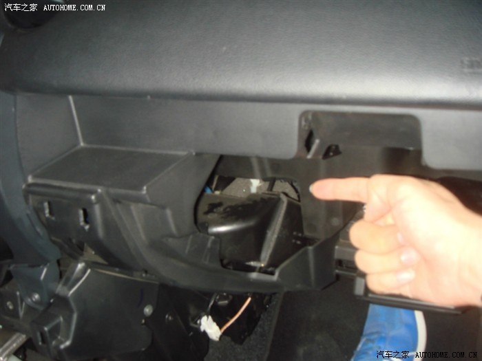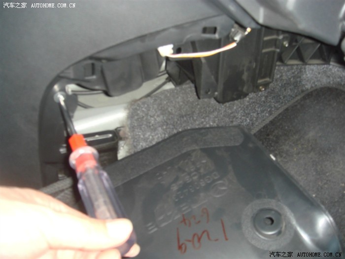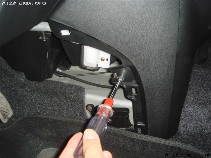 要从储物箱处向左看才能看到,用六棱螺丝刀卸下