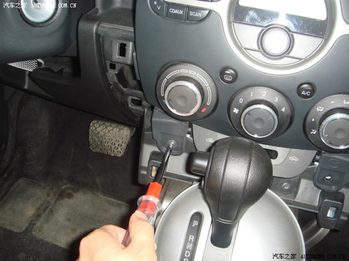 12.1 拆CD面板时一共要拧下3颗螺丝,别忘了储物箱左侧的隐藏六棱螺丝