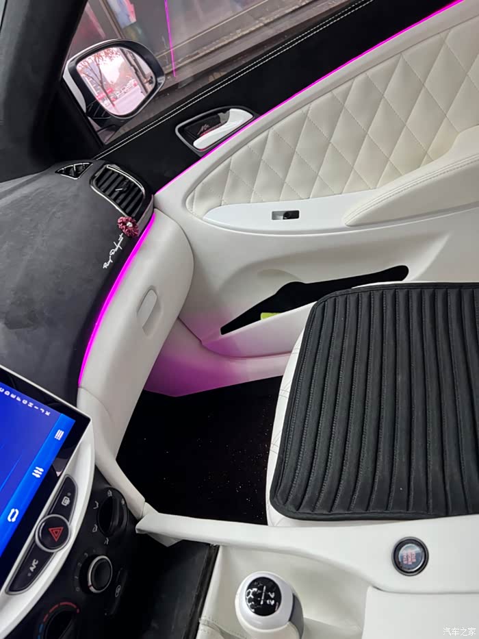 内饰方面 原来内饰是喷的漆 现在磨了全部软包 缝线 氛围灯