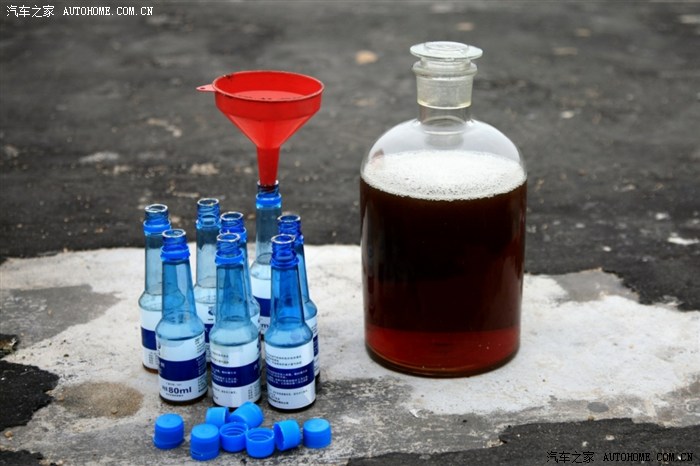 稀释剂就用的车用燃油,也不用秤量,加满瓶子后刚好补齐了2500毫升。