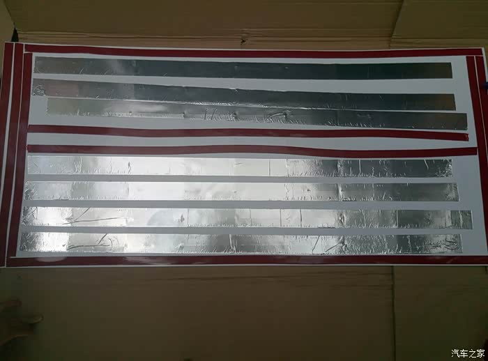 太阳能板背面贴胶,中间贴的隔热铝箔,也不知道是不是隔热,以前买的反正也剩了,直接贴上。