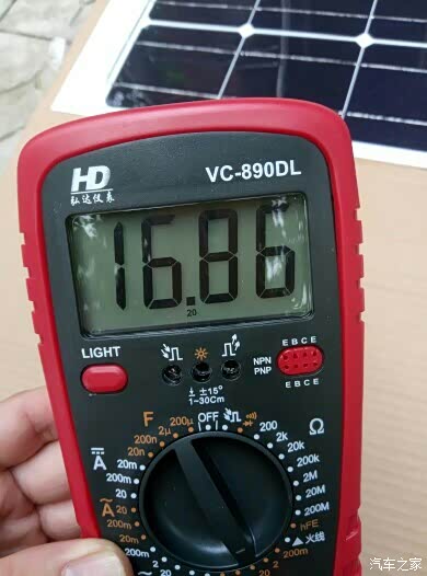 阴天的时候,用万用表测的太阳能板电压。