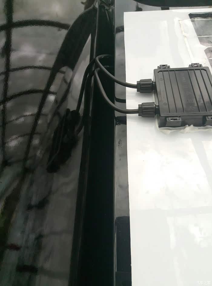 车顶的盒子那块,把太阳能板的线换成自己买的两芯线,可以取消这两个大疙瘩。因为太懒,而且关后备箱完全不影响。所以就没有重新走线。经常短途,现在不到2年电瓶不跑长途始终是黑灯,补电效果怎么样还得看一段时间。(完!)