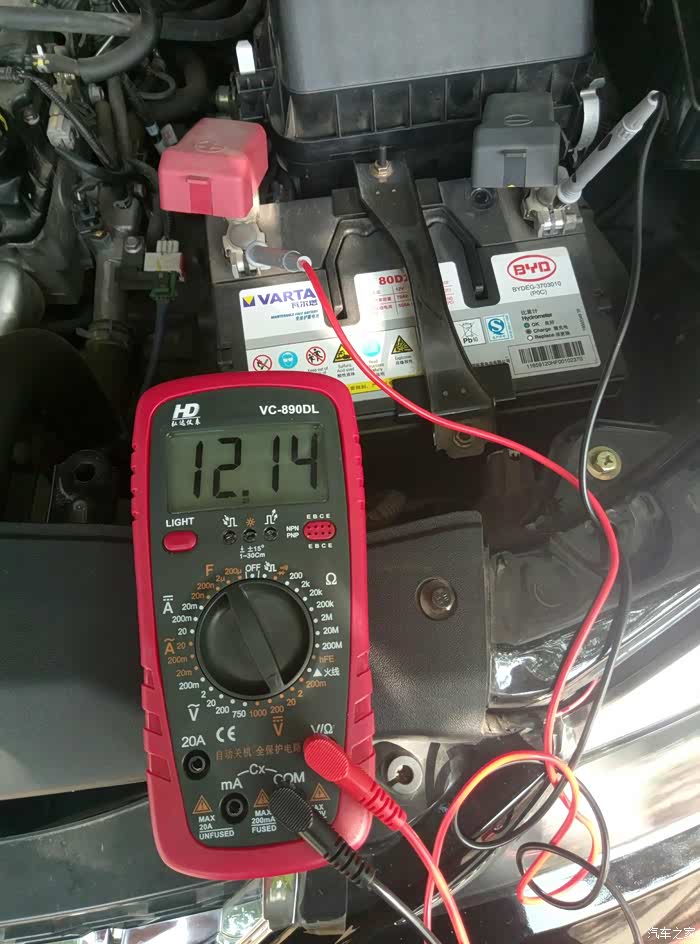 下面开始太阳能板,蓄电池,控制器的连接了。先测一下电瓶的电压 , 足够启动太阳能控制器了。