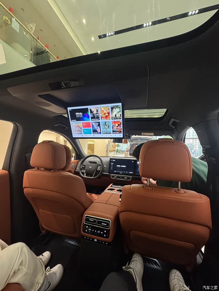 试驾的是混动的顶配版本,自己在后排坐了前半程,后半程是自己开的。总的来说,配置确实拉满,后排的按摩不错,但是没有按摩椅的力度那么大。