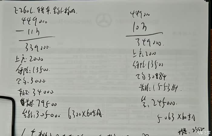 然后销售介绍了下目前260的价格。。销售上来只写了最大贷款的方案。首付1成。可以优惠11万。。我说我贷不了那么多钱。那销售说就没那么多的优惠了。。。多贷一万,就多优惠1400元。
