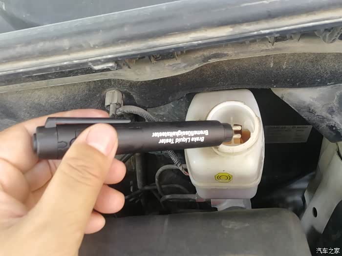 把刹车油检测仪插到刹车油的水油壶里。