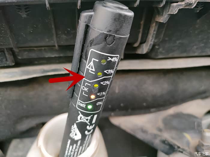 看到画箭头的这个位置了吗?如果最上面的两个灯有一个亮的刹车油就需要更换了。看来我的刹车油完全没有问题。