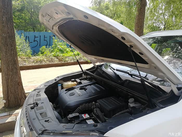 宽大厚实的引擎盖有两个液压顶杆支撑。这不还有厚厚的隔热棉。