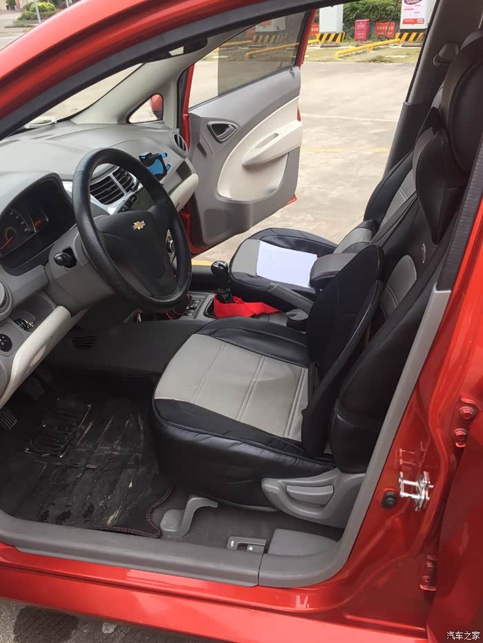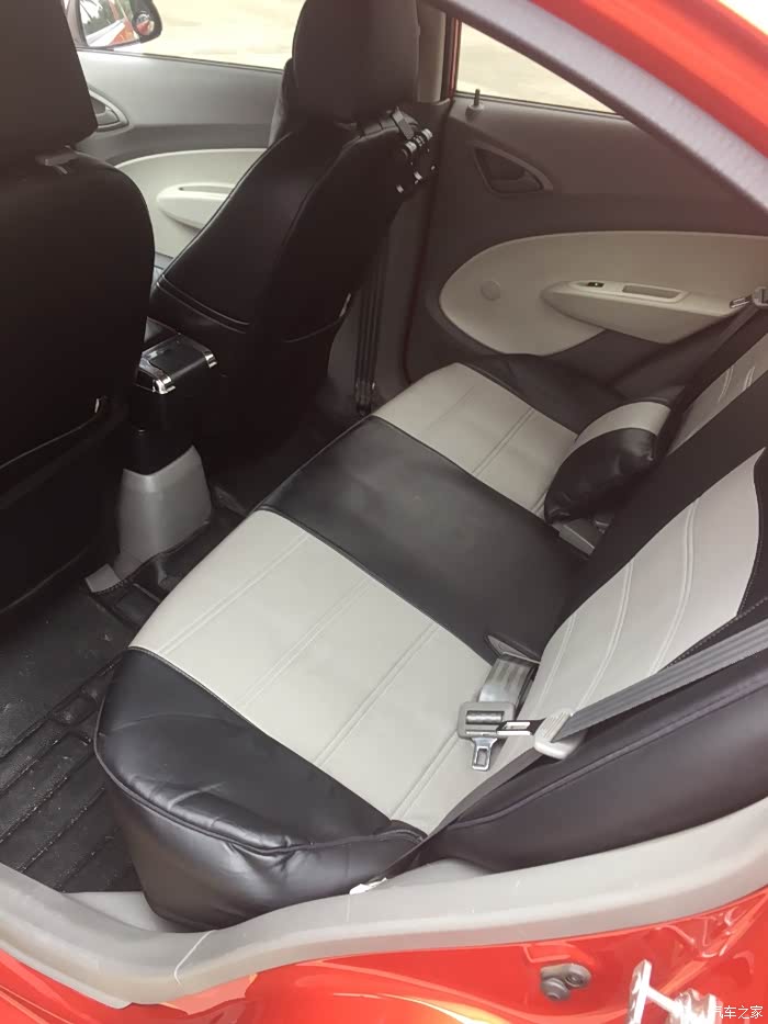 后排全貌加装了仿皮坐垫套某宝有售。