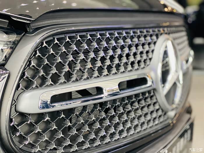 我把老款的也拍一张放上来,对比店内的老款GLC,新款显得也更精致了一些,而且中网的面积比旧款大一些,点阵状的星徽格栅也不一样了,而且新款下面的副进气格栅也加了星徽点阵状,还有灯组变得更加时尚运动。