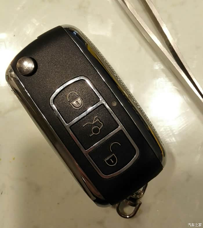 钥匙改装,一般有2种,一是直接用原来的按钮开关,优点是简单,缺点是按压手感不佳,指示灯也有可能不能显示,不稳定,二是采用新的按钮,通过连线连接原来的电路板,LED指示灯也从原来的电路板拆下来,重新固定到折叠钥匙面板相应的位置,优点是手感好,稳定,有指示,缺点是改装复杂些,需要用到焊接,还有需具备一定的电子知识。分享一下第二种钥匙改装的方法。