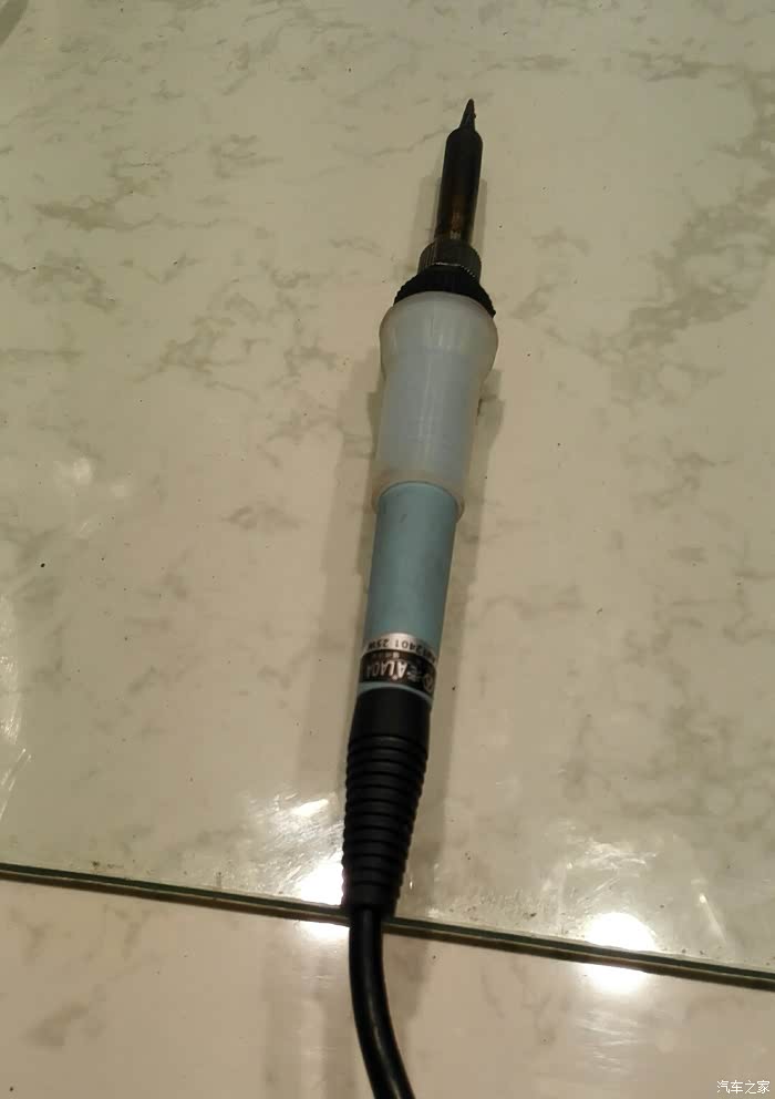 焊接,记得焊接前先将电池取下,LED哪里分正负极,开关不分,焊接好,先装入电池,如OK,再用胶枪固定一下电线,避免一会装配时电线断开