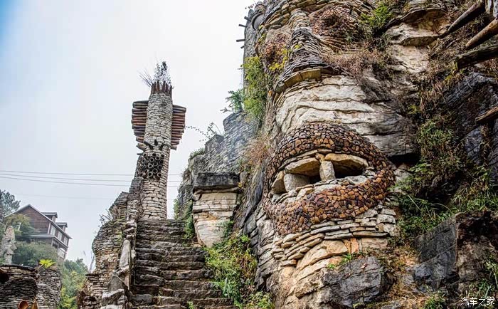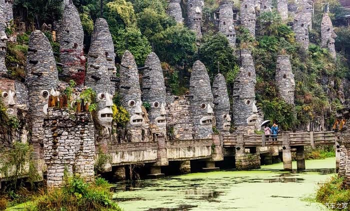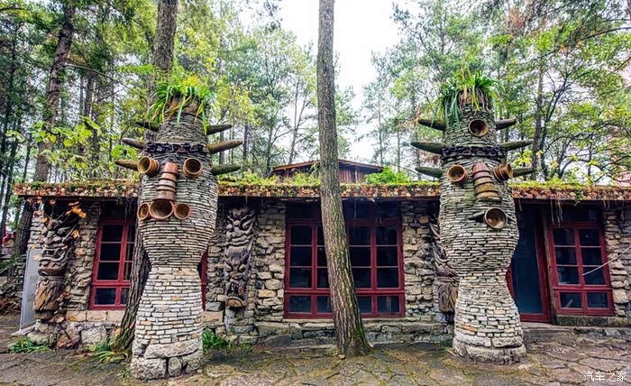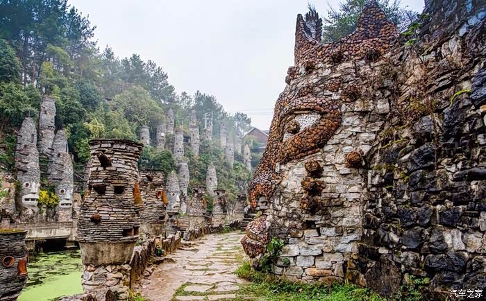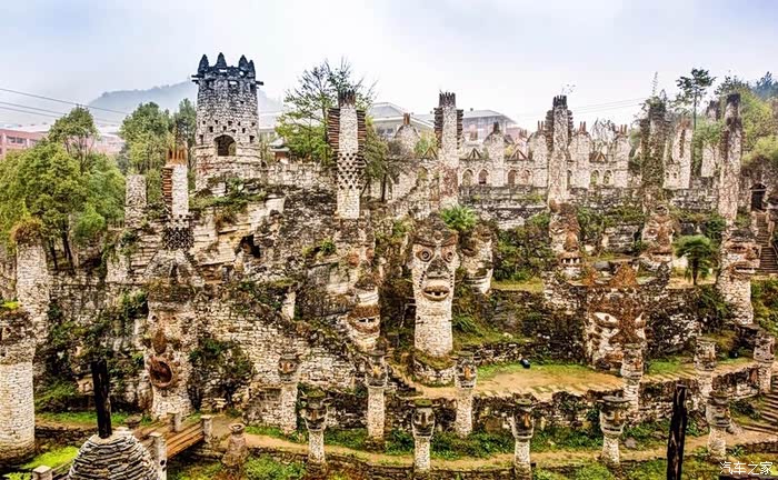 这是一座天马行空,且有点奇怪的“石头城”,它建于小山头和森林里,除了一些欧式建筑,充斥在各个角落的是各种用石头砌成的人和木马,在景区里行走,似有万千只眼睛紧盯着你看。