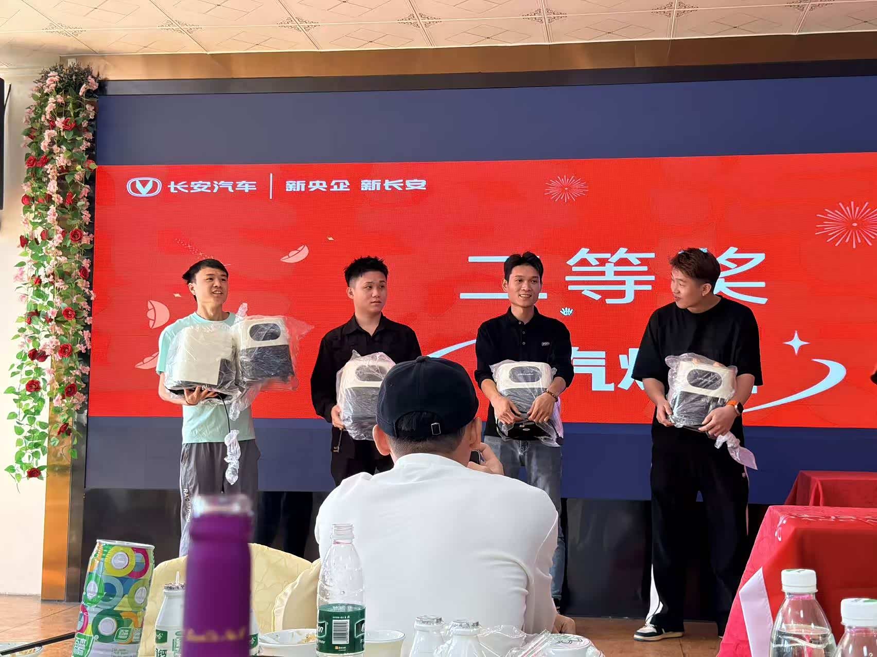 吃的差不多的时候,抽奖环节重磅登场!我们的会长逐一展示奖品:小行李箱、折叠露营桌、折叠收纳箱、空气炸锅、露营手推车,每一件都戳中车主需求,现场立刻响起欢呼声:“这礼品也太懂我们了吧!”“露营手推车刚好能装装备,下次自驾露营有着落了!”随着号码逐一抽出,幸运车友陆续起身领奖。中了空气炸锅的车友笑着说:“以后车友露营,我来负责烤串!”中了露营手推车的车友更是激动:“终于不用扛着装备跑了,下次带队去露营!”没中奖的车友也笑着调侃:“下次好运一定轮到我,到时候给大家带零食!”