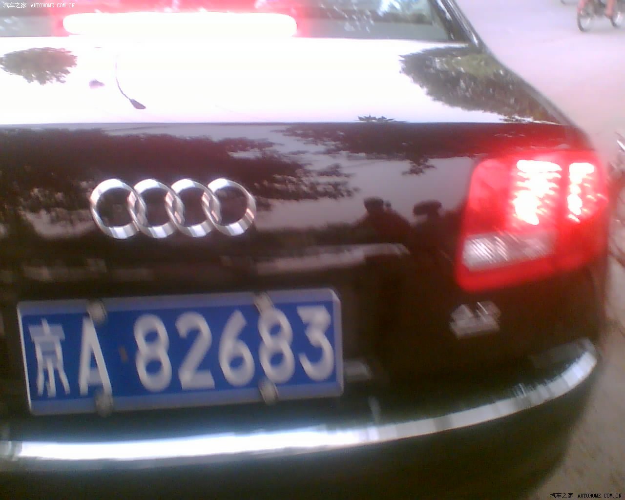 本人居住的是一个河南的2级城市---濮阳。也许这个地方很多朋友都没有听说过,的确,是小地方,街上的车也不多,能让人驻足观望的更是少的可怜。偶尔街上跑过一台BMW745Li,也让俺的心扑腾扑腾的条个半天。其他的好车基本没在濮阳露过面,印象中就见过1次卡宴,1次日产350Z,1次Q7,BMW、audi若干。 没想到今天竟然在路边一个非常简陋的洗车点上看到一台这个车!!! 它就是传说中的“京A8xxxx”!!!! 不了解“京A8xxxx”的,请百度“中国大陆最NB的车牌”。 慌忙拿出手机拍照,由于下班路上人太多[都是我们中原大化的同事],小弟我骑个破自行车,实在不能在大厅广众之下围着人家的车狠拍。另外车上还有人,那时候他们正洗完车准备走,我慌忙拍了2张,车子就跑了。看到那车挡风玻璃中间有块“红底白字--警备”。但是没拍下来,也不敢拍那么多,怕车里的下来把我从大陆弄消失。 以下为图。仅供热衷此道的朋友交流。