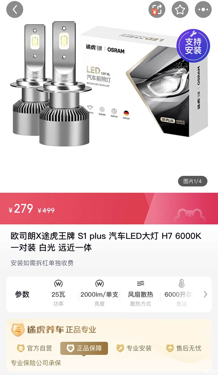 到手第一件事就是升级了大灯,买了T虎定制欧司朗S1,提升效果非常明显