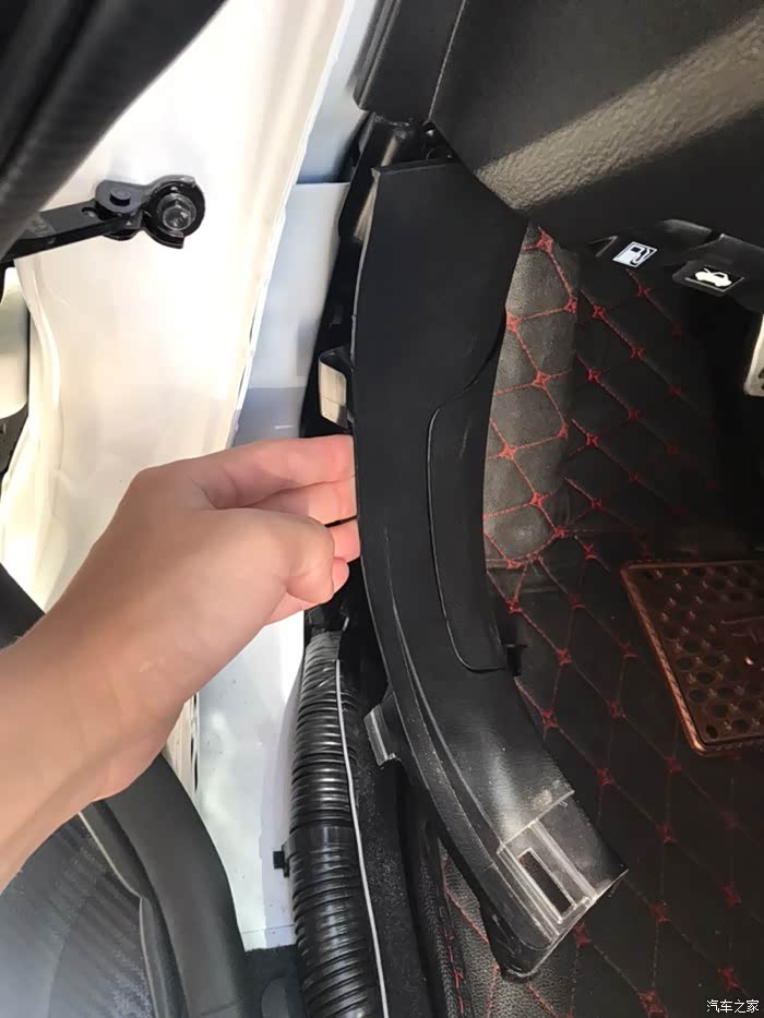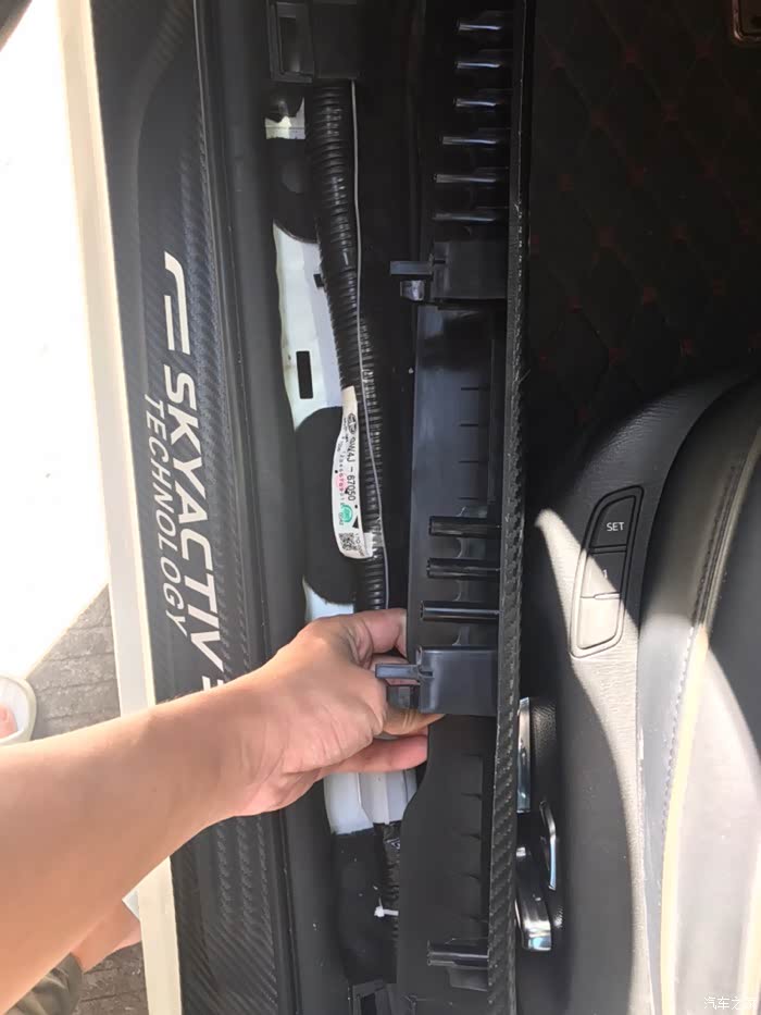 装回护板卡扣,其实告一段落。试了一下,非常好用。只要车子是在没有速度的状态下随时都可以按开关打开后备箱。当然。在车打着火的情况下,只要是没行驶也是可以开后备箱的。锁了车门就无法打开了。这个特别适合新款车加装了一脚踢液压撑杆自动开启尾箱功能的。当然,如果你已加装了电动尾门,那就更爽歪歪了
