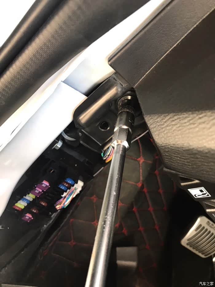走线的位置大概就是从保险盒下方经过主驾的门踏板再到左后座的门踏板,最后再经过c柱进入尾箱