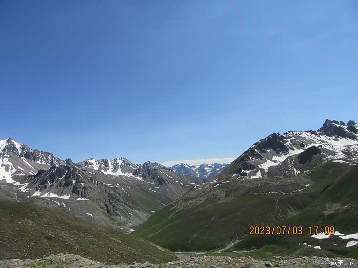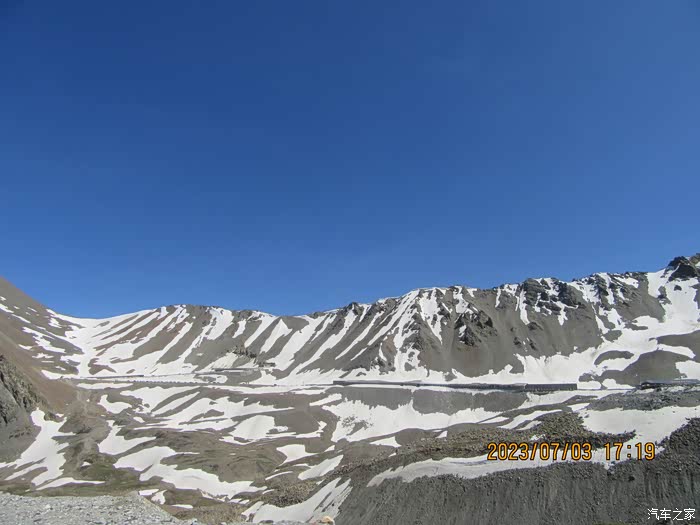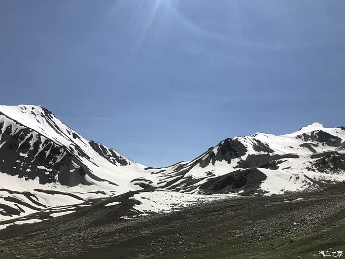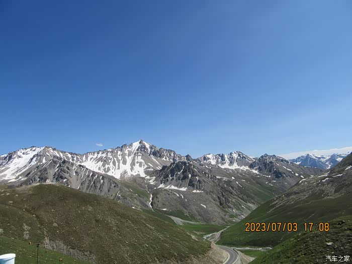 从那拉提草原出来前往独山子市路上。3390米哈希勒根达板,四季积雪。