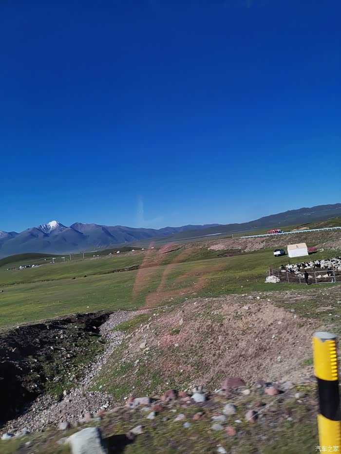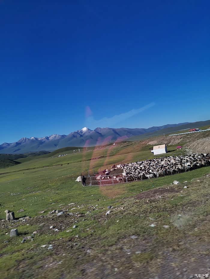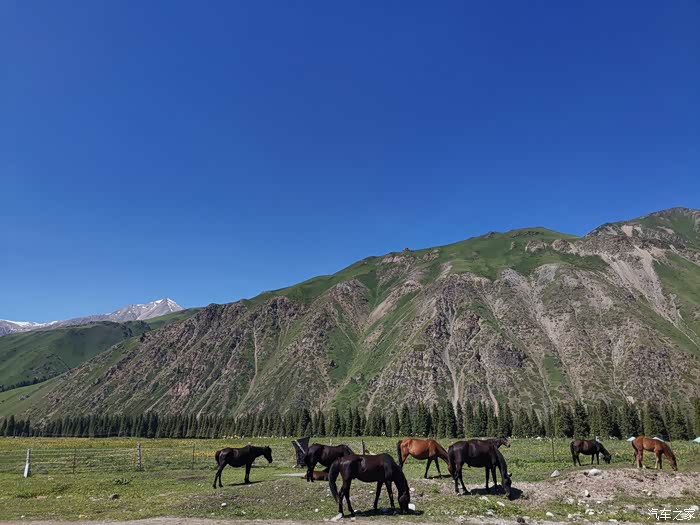 从那拉提草原出来前往独山子市路上。看到雪山。
