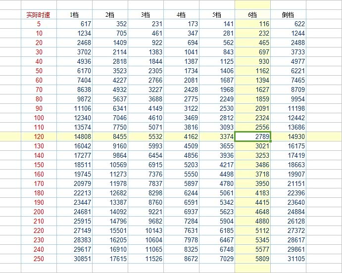 表1公式:速度×速比=变速系数×转速