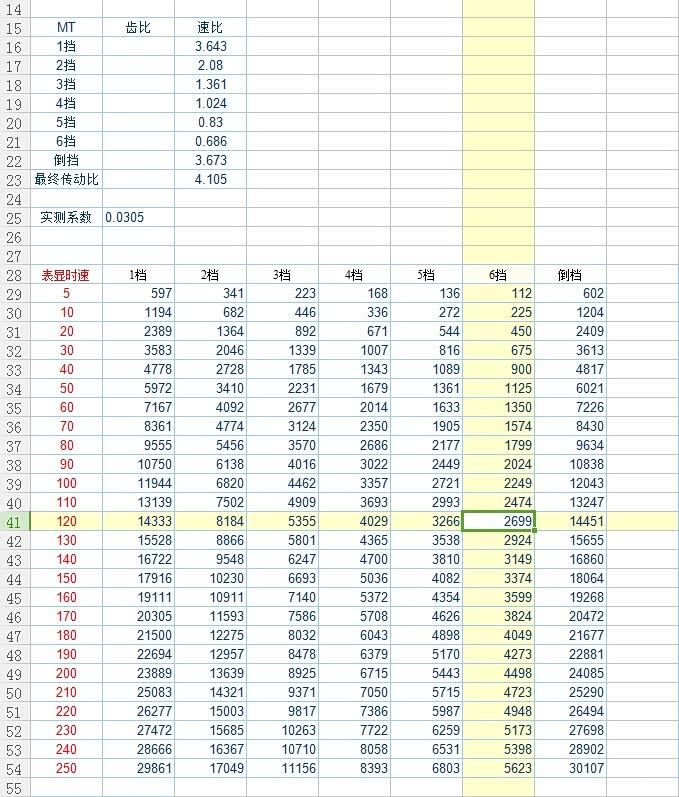 iZ—主减速比;iD—变速箱对应档位速比; V—车速,km/