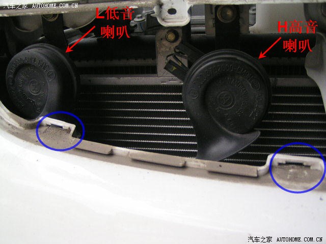 引用“niceone”的心得:(有点小心得,喇叭口可以稍微往水箱方向用手掰掰,如果喇叭口要稍微斜对着中网,加上中网的百叶窗效果,改变气流方向后,各种水气往里灌。影响效果和寿命)。最后接上喇叭的双插接线,试试(接一个,试一个,确保两个都响,另外你可以听下高音和低音的区别)。ok!倒序装回。搞定!