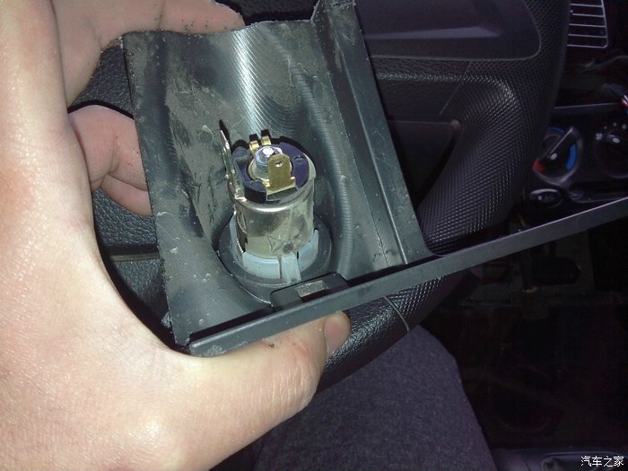 还有这个点烟器,我想拆下来找个位置给它安顿。研究半天没把它从那块废料上完整拆下来,最后忍痛丢掉了,以后出门随身带打火机吧。