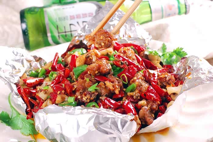 【特点】 菜色泽艳丽光亮,鲜辣辛香