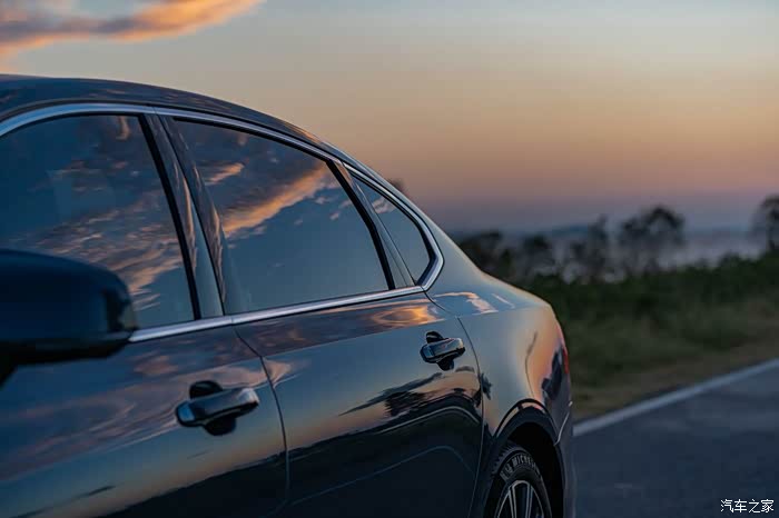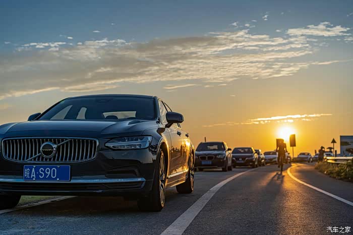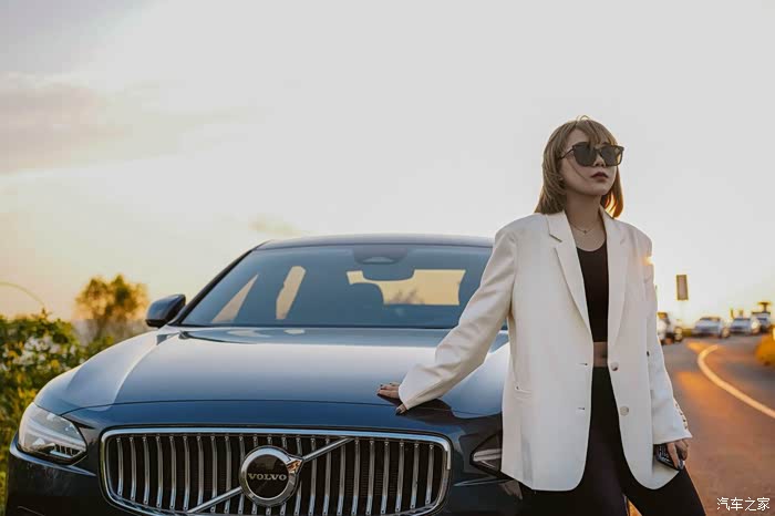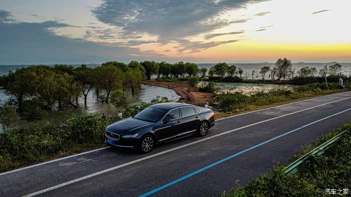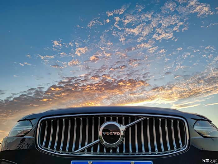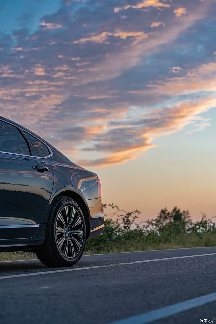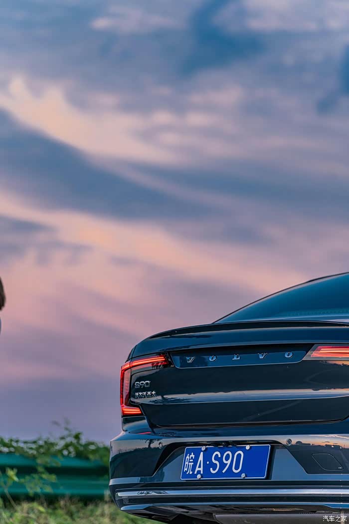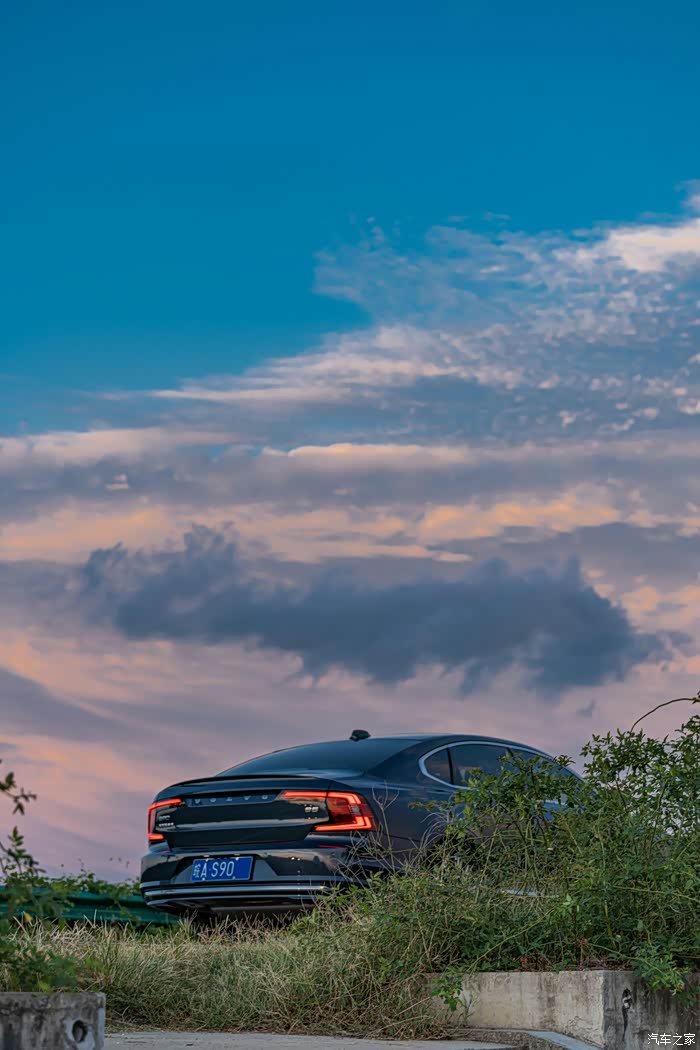 S90是一辆C级的行政轿车,它的整个车身线条外形设计是非常优雅的,尤其我这个车的颜色是牛仔蓝比较沉稳的蓝色,我之前把这个蓝色成为远山黛,这种和黄昏时远处高山一样的黛蓝色是可以完美融入到夕阳中的,完全没有什么违和感。