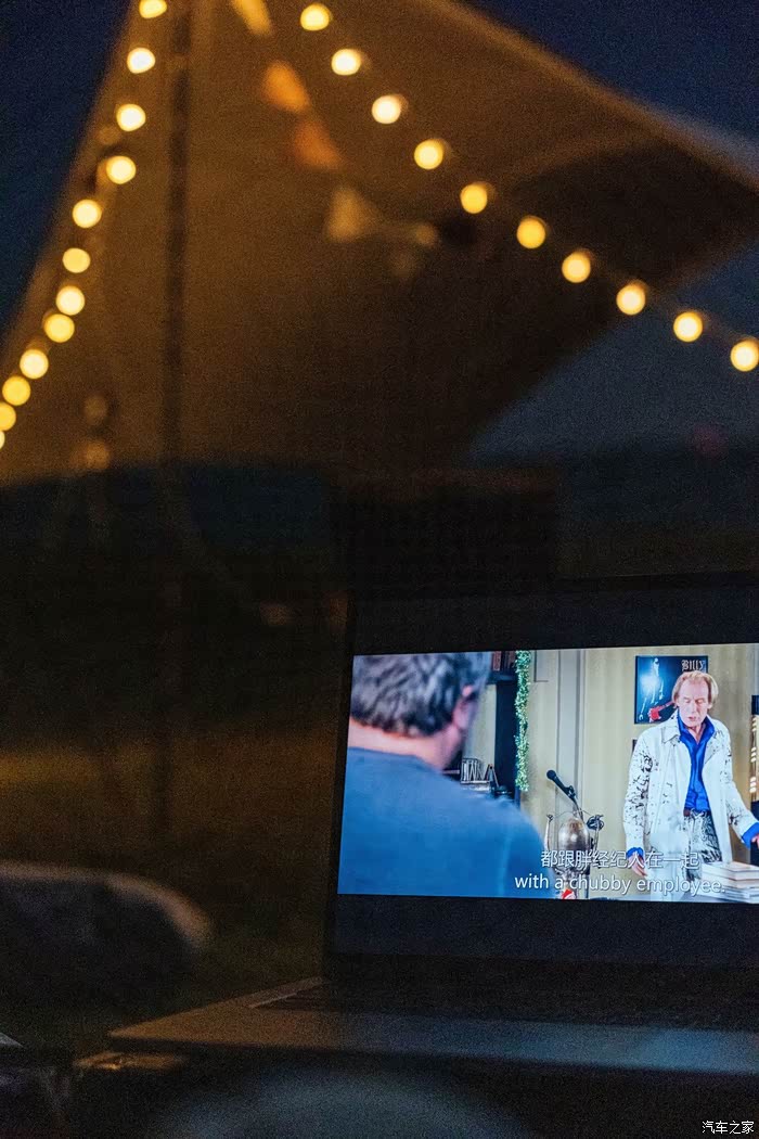 有些场地确实是不适合开车到露营点旁边儿,营地车简直神器啊,YYDS永远的神。搭好了帐篷和天幕。铺上野餐垫,撑开桌子,打开笔记本电脑,嘿,户外的露营影院就开始啦。