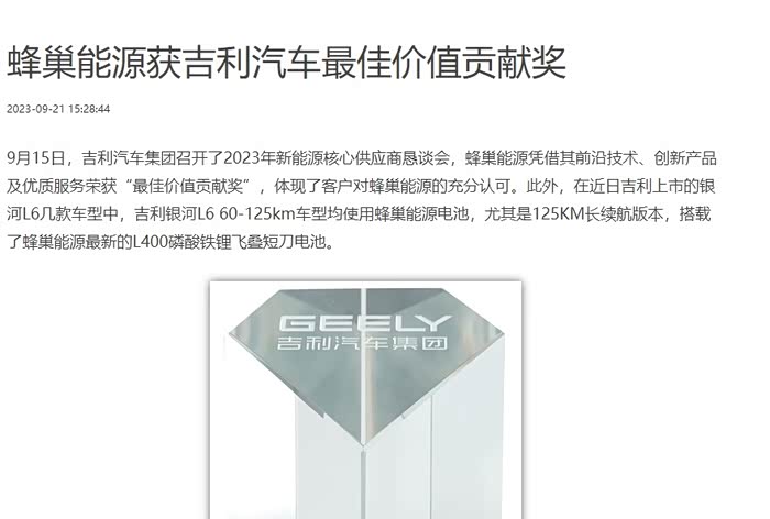 吉利银河L6 60-125km车型均使用蜂巢能源电池,尤其是