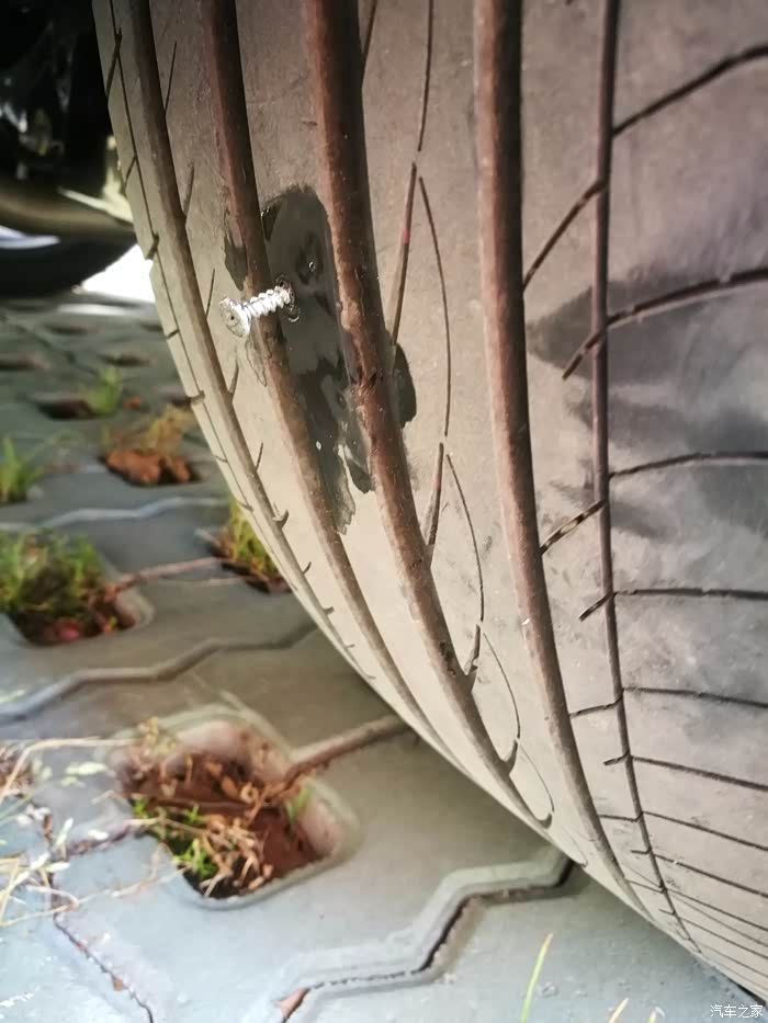 这么长的钉都扎进去了,但没有漏气!补胎的说不漏气没关系。