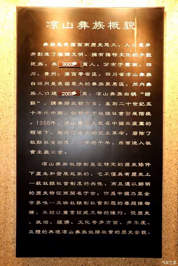 博物馆对凉山彝族奴隶社会政治、经济、军事、天文、历法、习俗、宗教以及农牧业、手工艺等的充分展示,对于人们了解凉山过去的奴隶社会,认识人类社会发展历程,了解彝族悠久的历史。认识智慧、勤劳、勇敢的彝民族,从而弘扬民族文化,增进民族团结,以及进行爱国主义和历史唯物主义教育.都具有十分重要的意义。 在今天中国大西南的广袤地区,居住着一个文明几千年的古老民族--彝族。