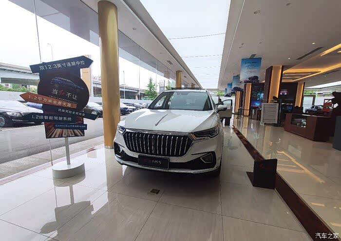 所以第二天就和媳妇来到了红旗4S店看到了红旗HS5的容颜,和图片的一样,不过看到真车时还是会比在照片上更加有气势。整辆车的车身造型就是偏向于时尚动感方面的,相对于同款级别的SUV来讲,红旗HS5多了运动感和奢华感,这也和红旗HS5的定位豪华B级SUV相对应。