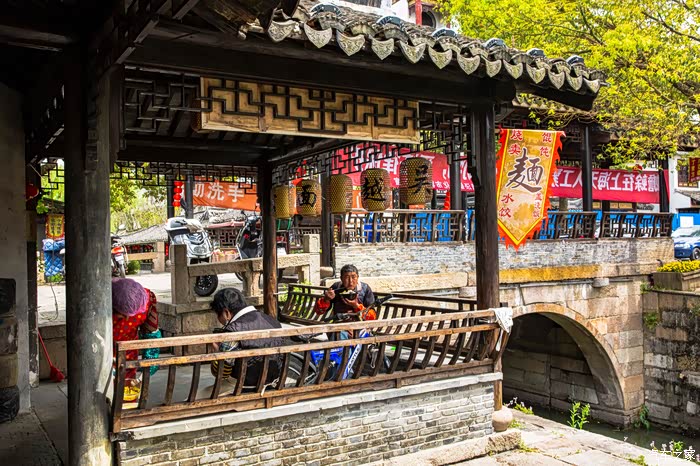 枫泾古镇跟新城就在北大街的两头,一路走过去,似乎是踏上了时空隧道,由现代走向了从前,由城市走向了水乡。古镇不大,沿着一条北大街就能通往古镇的中心,那里有枫泾三桥。过其中一个小桥就到了生产街,一条临水的长廊,一排小店,古色古香,很有特色。比起西塘和朱家角,这里不大,但古镇的古意却没有丝毫逊色,再加上这里不会像其他一些古镇那么人山人海,所以在这里来逛一逛还是很舒服的!