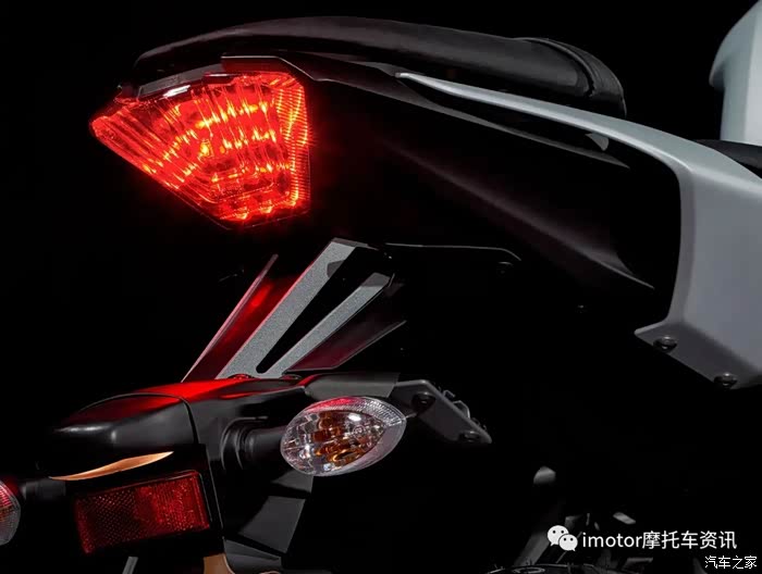 ▲卤素大灯搭配LED尾灯,本次引进的MT-07在外观上继承了第二代MT家族设计风格,走暗黑路线。