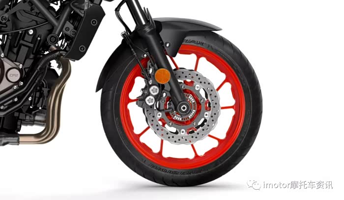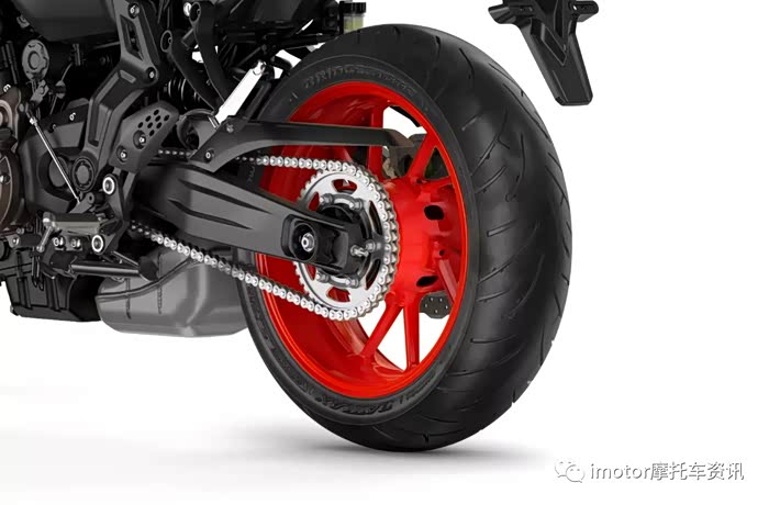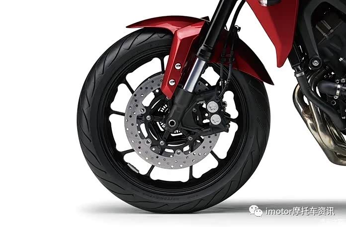 ▲搭载KYB的预载可调节41mm正立式前叉,后面则是预载和回弹可调的多连杆中置减震,减震配套看起来中规中矩,但还是要看实际表现,MT-07配置前后17寸普利司通轮胎。
