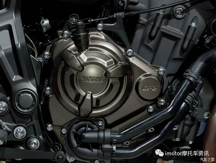 ▲搭载689cc水冷四冲程直列双缸DOHC发动机,发动机型号为CP2,动力特性上MT-07能在8500转爆发54kW最大功率,6500转达到最大扭矩输出68N.m,出力迅捷,这也是为什么MT-07个性如此突出的原因之一,正是因为它采用270度曲轴,相比传统180度曲轴,两个气缸间的点火间隔更短,有效提升了中低转速的扭力,让人感觉任何转速下都有充沛的动力储备,营出独特的发动机出力“脉动感”。