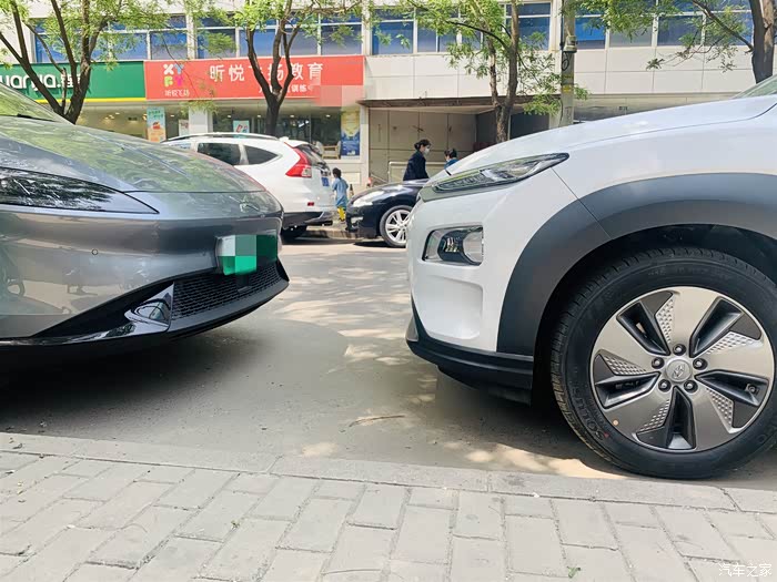 这辆车的正对面就停着一辆小鹏,这么一对比,感觉小鹏的前脸有点太尖了,不是很喜欢那种尖尖的感觉