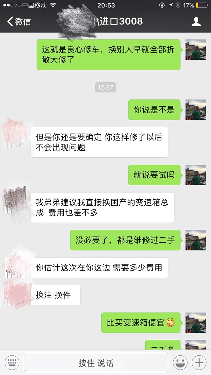 人车基本一样都有顽强生命,关键时刻是大卸八块还是小成本的维修下来,这个取觉个人,实际我们出发点赚钱在后面,先去排忧解难去解决车友的困惑,用一些小成本维修解决掉他用大修的钱的问题,话又说转来有的时候不是你我能办到,作为一个搞技术人总想去挑战一下,你还有救,你还有救不能放弃竭尽所能去挽救尽职尽责把自己的事情做好,这就是一个人工匠精神