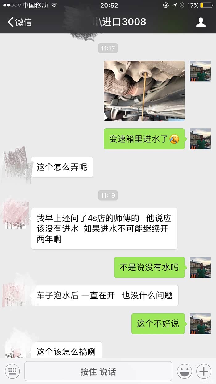 问题二来了:就怕有些人不知道或者旁人误判,告知你没变速箱进不了水没问题可以开,跑着跑着日积月累几年过去了,跑不动发现不对才知道问题来了,到这个我们维修起来也很麻烦下面有图片