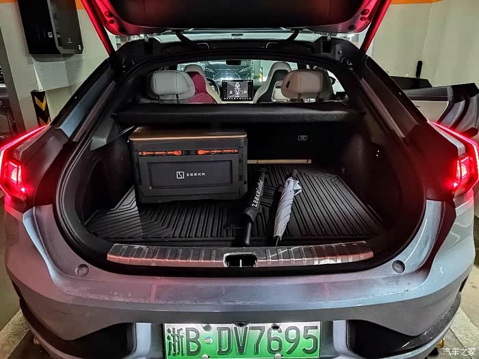 极氪001的后备箱空间,那真是大的美化说,而我是一个比较喜欢车内干净的人,所以我不允许车内放太多东西,所以我在后备箱放了极氪收纳盒和2把极氪出品的雨伞,极氪001我只接受极物出现在车内,哈哈,也算是癖好了。
