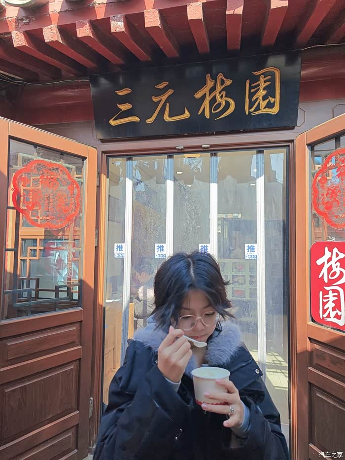 离开雍和宫大门,进入国子监大街,吃货的我俩必然不会错过三元梅园的双皮奶和杏仁豆腐,店里没有座位就端着碗站在门口吃,晒着太阳,看着街上偶尔走过的人,有种老北京的惬意。