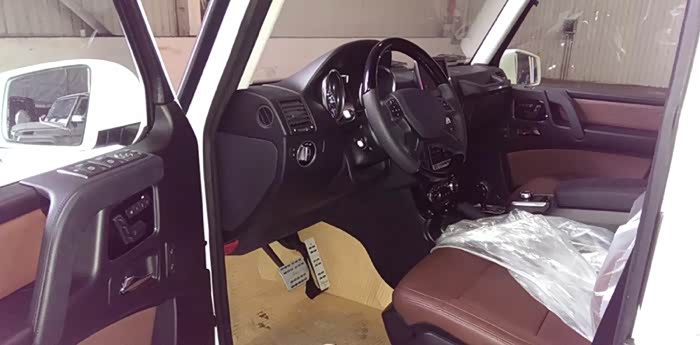 内饰方面:奔驰劳伦士G60L内饰也走的是豪华路线,让你感觉不到这是一款纯种的越野车。强劲的楔形特征以及醒目的奔驰车标使其在静止不动的时候都能让人感受到他的奔放气息。车内采用黑色中控棕色真皮材质的搭配,体现他硬朗的一面。
