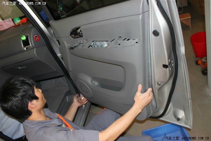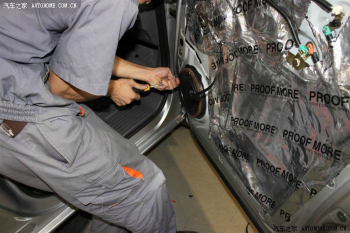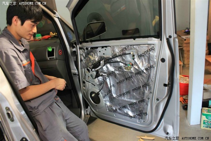 撕开薄膜后,准备开始做隔音(前门)
